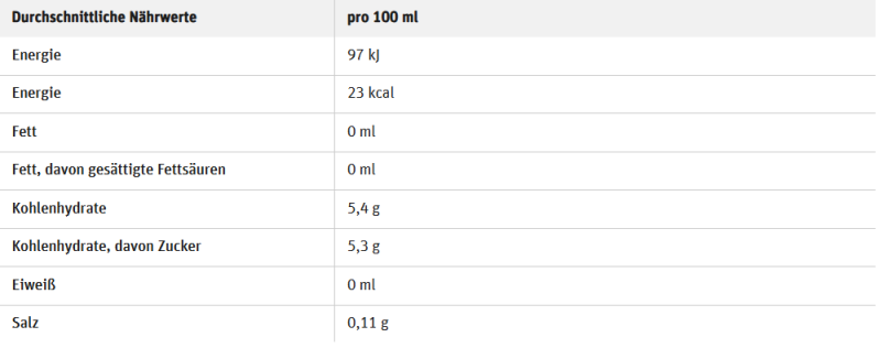 Wasser, Zucker, Pfirsichsaftkonzentrat, Säuerungsmittel (Citronensäure), Säureregulator (Trinatriumcitrat), Schwarztee-Extrakt1 0,12 %, natürliches Aroma, Antioxidationsmittel (Ascorbinsäure).