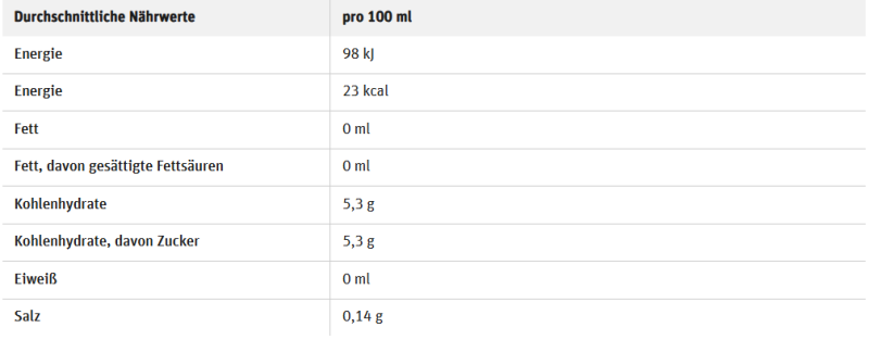 Wasser, Zucker, Säuerungsmittel (Citronensäure), Säureregulator (Trinatriumcitrat), Zitronensaftkonzentrat, Schwarztee-Extrakt1 0,12 %, natürliches Aroma, Antioxidationsmittel (Ascorbinsäure).